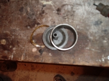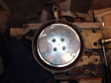 The piston is refitted the right way round, and its ring dowels lined up with the ring-splits. the cylinder bootom is chamfered out to make it easy to slide the