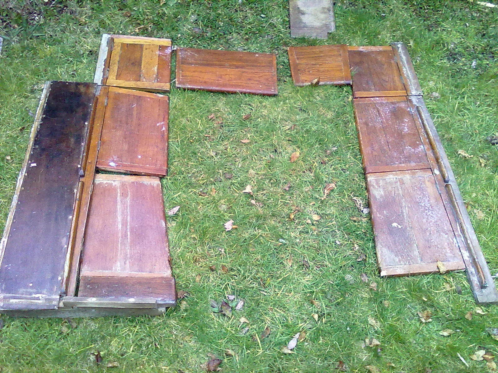 I have removed it all as a ‘materials kit’ i think will transform a delapidated unwelcoming plastic or rotting wood cruiiser like it was in, you will bound to need to construct framing and sides, for a total wood enclosure, but the visual tops are here, and i would say otherwise unaffordable expensive to buy and have locker lids made of such material today, even on a sunseeker.. As you can see, there now plenty of scratches to sand off and a new stain and varnish will create a marvel for all your visitors and something to be proud of...