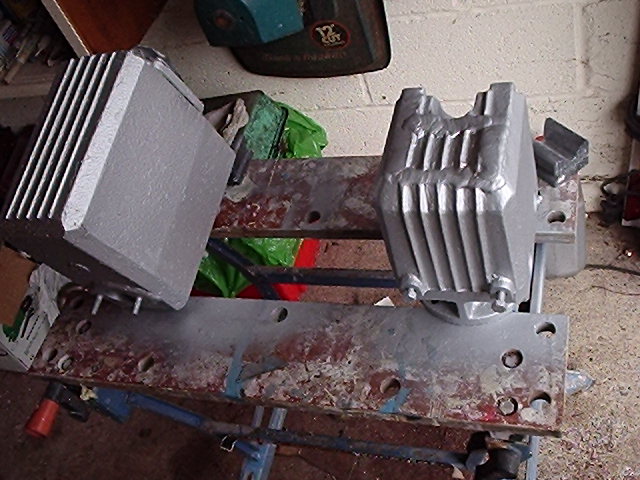 having been polished up with wire wheel to remove old paint and rust, the exhaust and cylinder head are sprayed with hi-temp paint (alluminium spray i used)