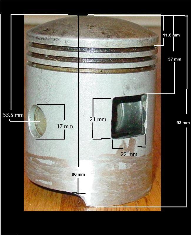 Above piston diagram sent in by David H with dimensions, see below for more dimensions and markings.